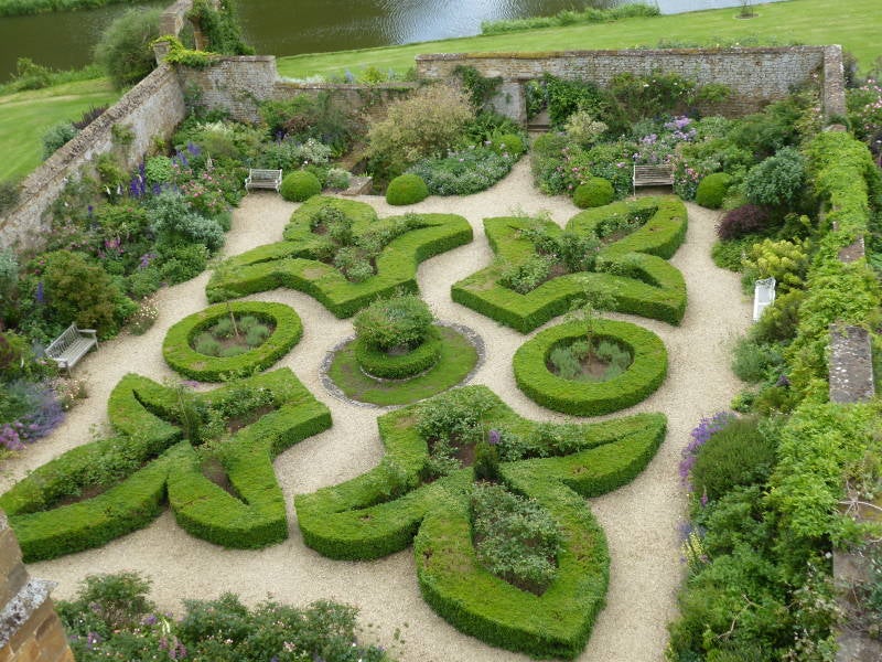 Vandaag vertrekken we uit Cheltenham en beginnen aan de eerste etappe van de terugreis, gelukkig met twee mooie tuinen en een leuk stadje op onze route. Alle koffers gaan in de bus en 10 minuten voor vertrek zit iedereen al in de bus. Wil iedereen zo graag naar huis? Nee, we willen mooie tuinen bekijken, dus op naar de eerste: Bourton House in Bourton on the Hill. Een prachtige wijdse tuin bij een groot herenhuis. Mooie borders met veel exotische planten en vormsnoei. Interessant zijn de banden van Buxus, die om elkaar lijken gedraaid. Interessant is de schaduwhal achterin. Hier staat voetblad ‘Spotty Dotty’met bloem (die moet je wel weten te vinden) en varens, salomonszegel en Hosta’s. Het is een rustige tuin met veel verrassende details.